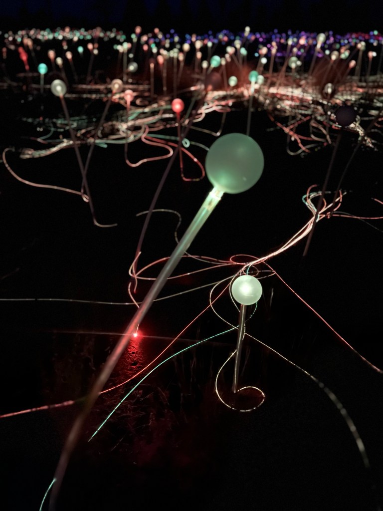 We were encouraged to take our time, slowly walking through Field of Light, and to absorb. As in a labyrinth, we meandered at our pace along the paths, not really sure where any path would take us. Each path was dark, lit up only by small white lights on the side, bordered by the brilliance of ever-changing reds, greens, and violets.