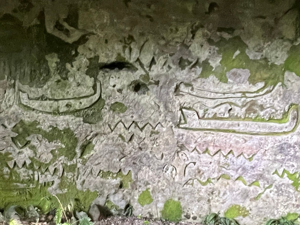 As Ena passionately shared this story with us, she showed us the rock carvings that visually told their story. These carvings have been dated to 1050 AD and are not art, she says. They tell the story of her ancestors. Carvings of canoes. Long canoes. Their story of grief. Of life.