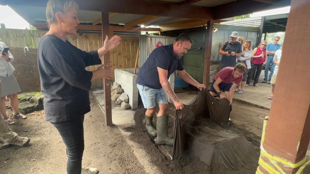 We pulled up in our bus to the Kohutapu Lodge, where Nadine and her family welcomed us with smiles and open arms to their home. They had been preparing since early morning a traditional Māori lunch called a Hangi, where food is cooked for hours in the ground.