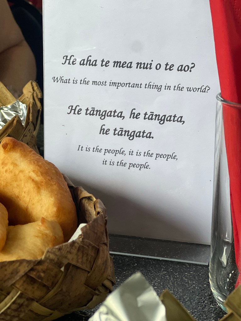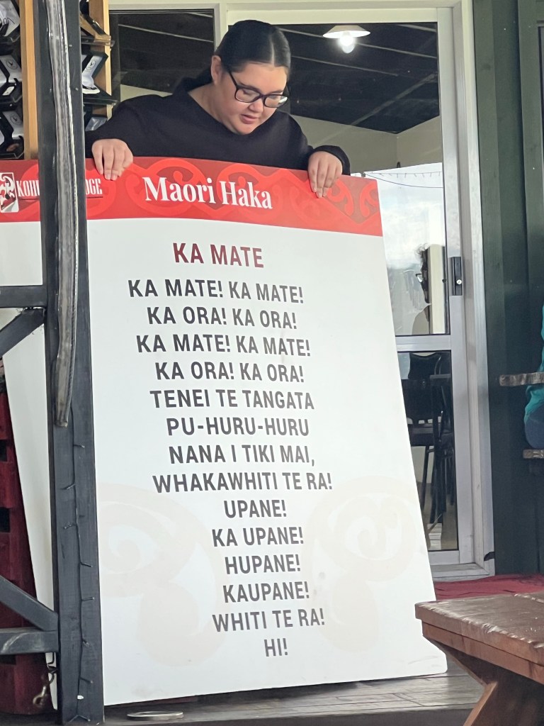After lunch, Nadine invited us to gather around to hear more of their Story. We learned about Haka and soaked in the Māori Haka as Ena expressively shared that with us. Nadine and her husband gave up everything 9 years ago when they felt called to make a change in their community through tourism. Through the leftover Hangi meals, as buses upon buses came through to their lodge, they were able to feed over 30,000 meals to children in their community. But Covid brought them to their knees. How could they continue to make change in their community, with no tourists?