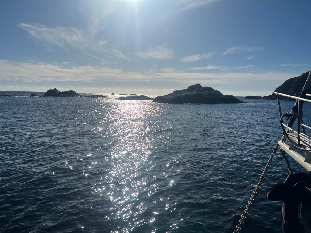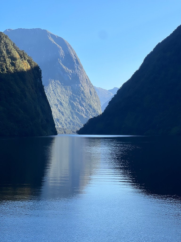 “Wow, we only get a few days out of the season when we can go this far into the sea”, our captain said, as we soaked in the ocean breeze, staring over the water becoming illuminated with the setting sun. “Someone here must have done something good for this”. The Fjordlands National Park is one of the wettest places on earth getting 7 meters of rain a year, with over 200 rain-days a year. All we had that February day was bright blue sky.